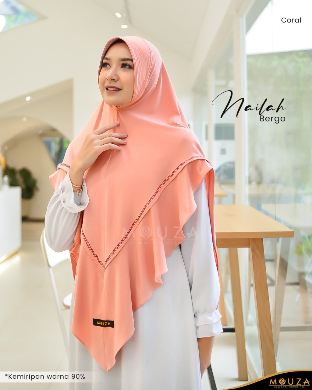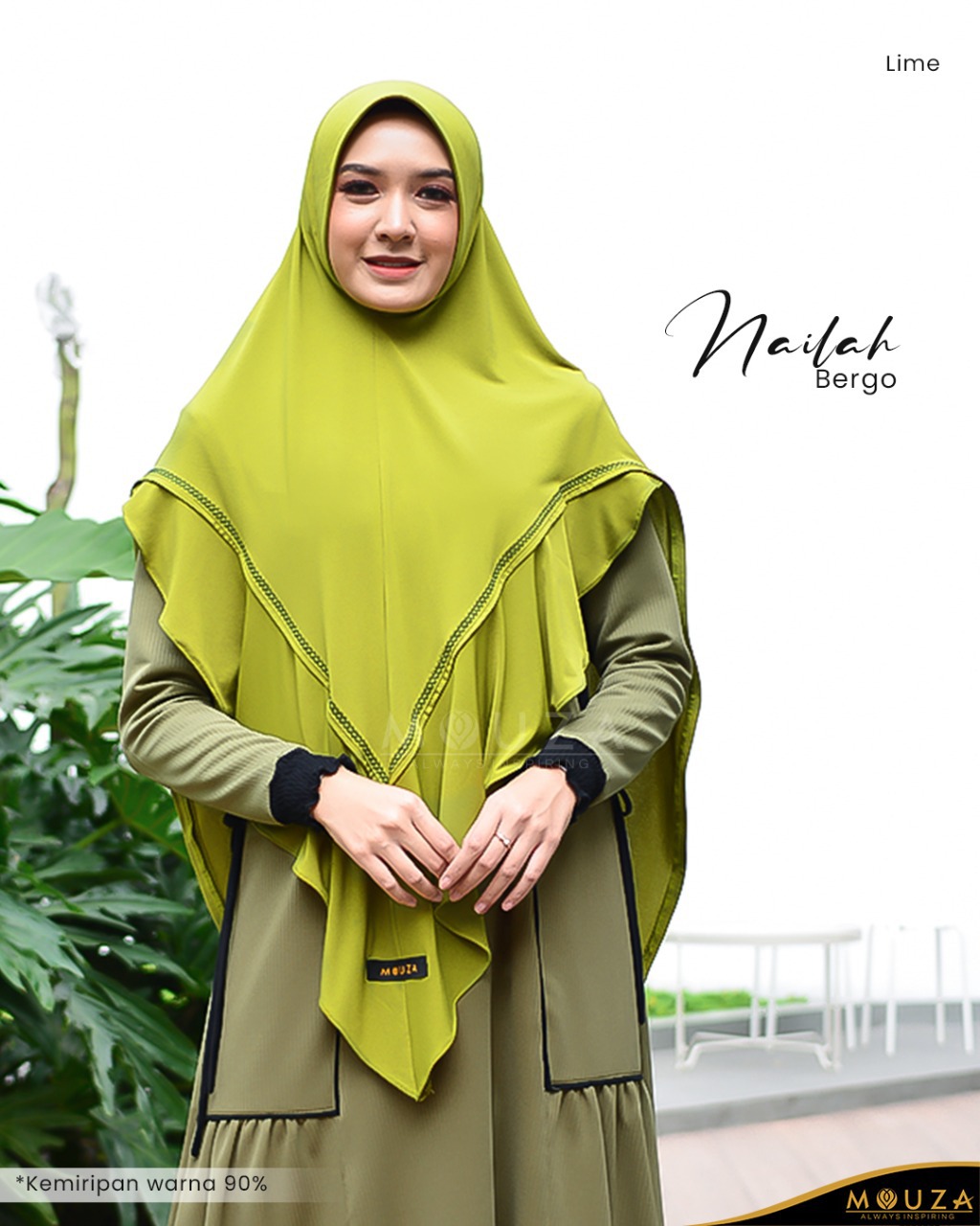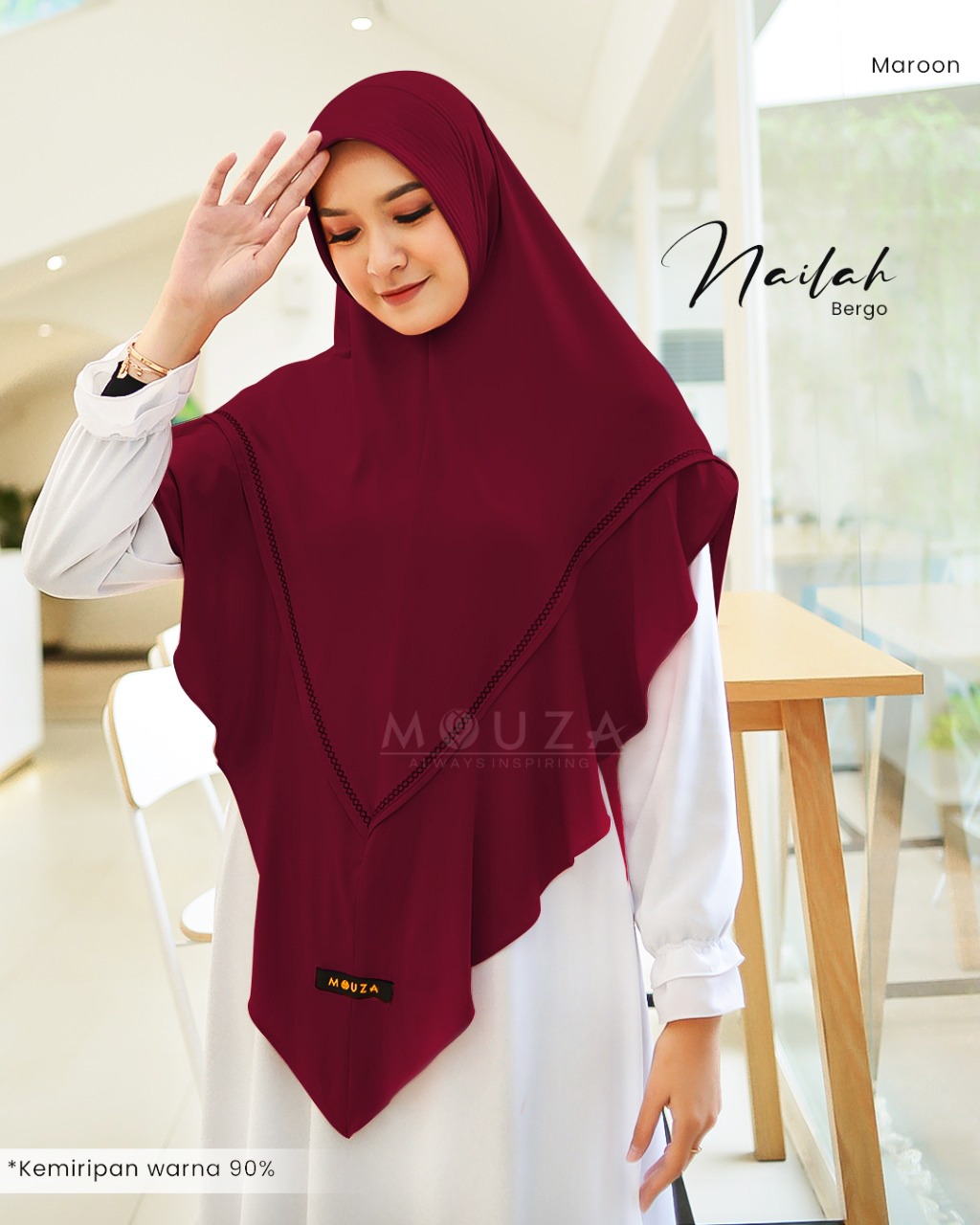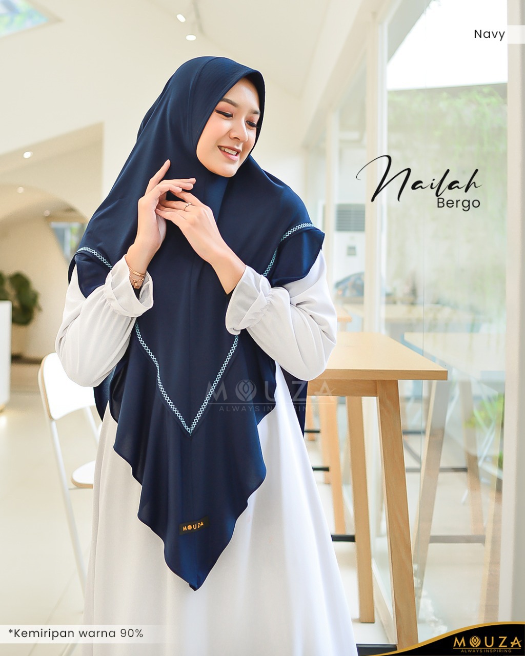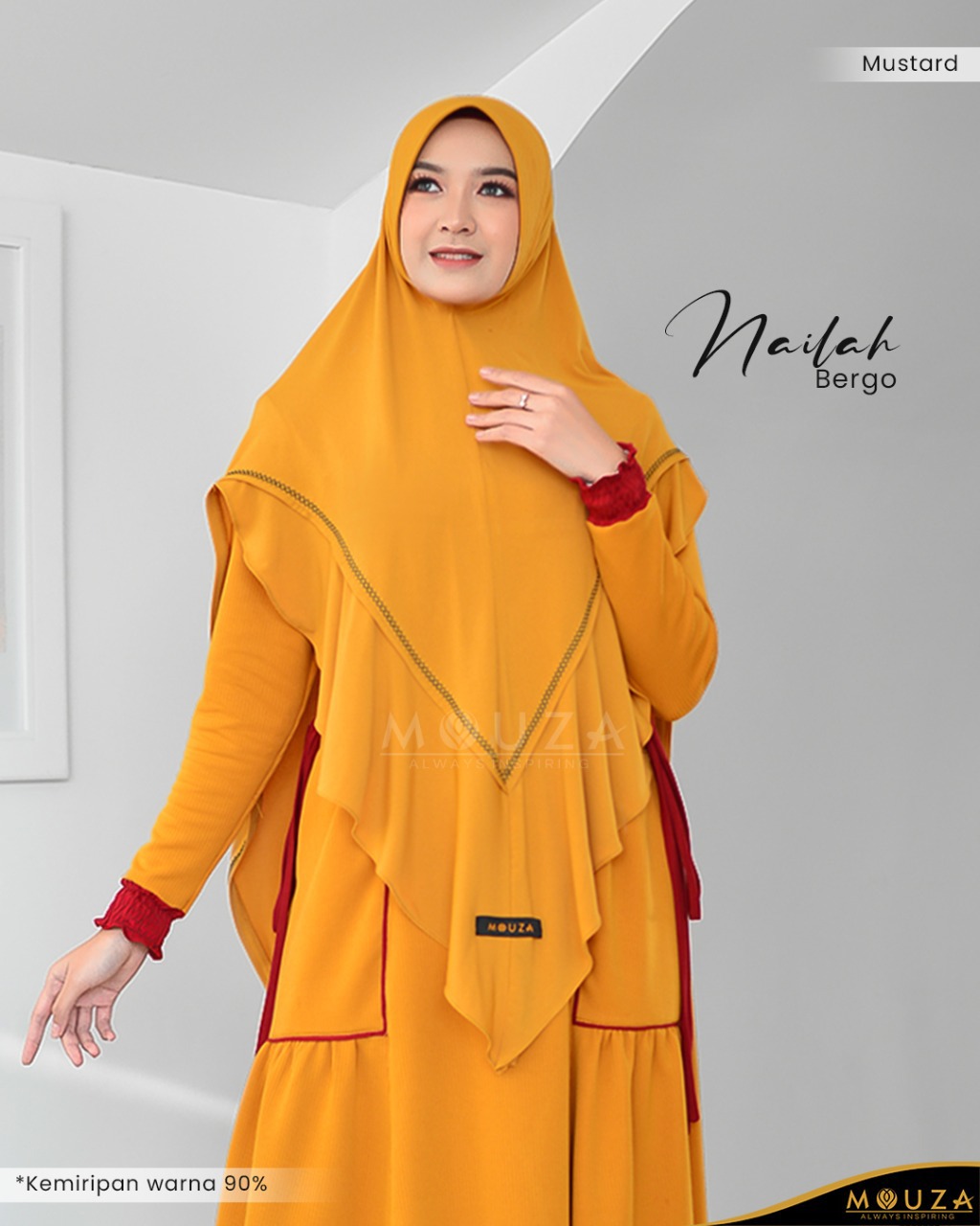 Bergo Nailah bisa dikombinasikan dengan Nailah Dress.