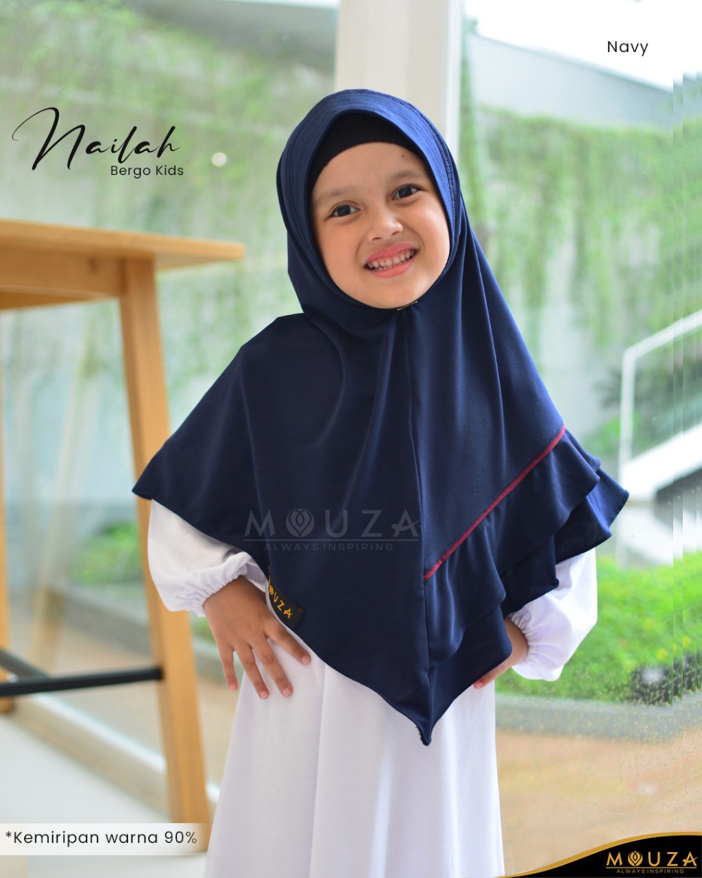 Bergo Nailah Kids bisa dikombinasikan dengan Nailah Dress Kids.
