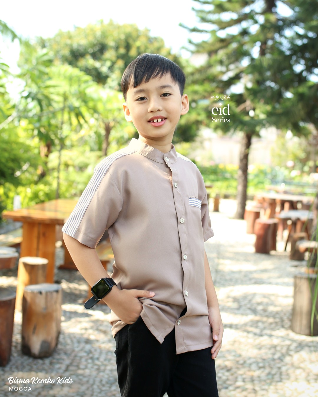 - Bisma Kemko terbuat dari material Shakila yang memiliki tekstur lembut, jatuh dan sedikit mengkilap. Kain Shakila yang ringan, tidak mudah kusut dan nyaman dipakai sepanjang hari.