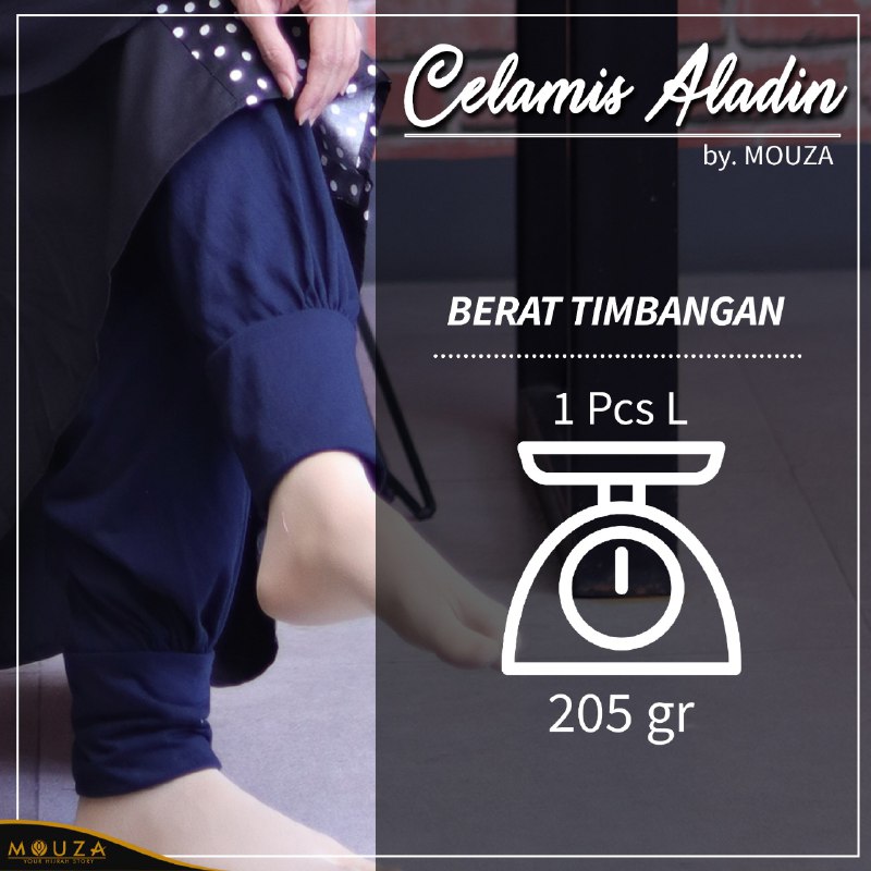 - Celamis Aladin By Mouza atau Inner Pants adalah celana dalaman gamis yang berbahan Polyester Soft 30s yang nyaman dipakai, lembut, dan tidak nerawang sehingga sangat nyaman ketika digunakan.
