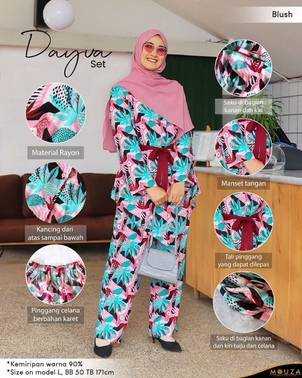 Dayva set merupakan setelan atas bawah terbaru dari Mouza yang bermaterial rayon.