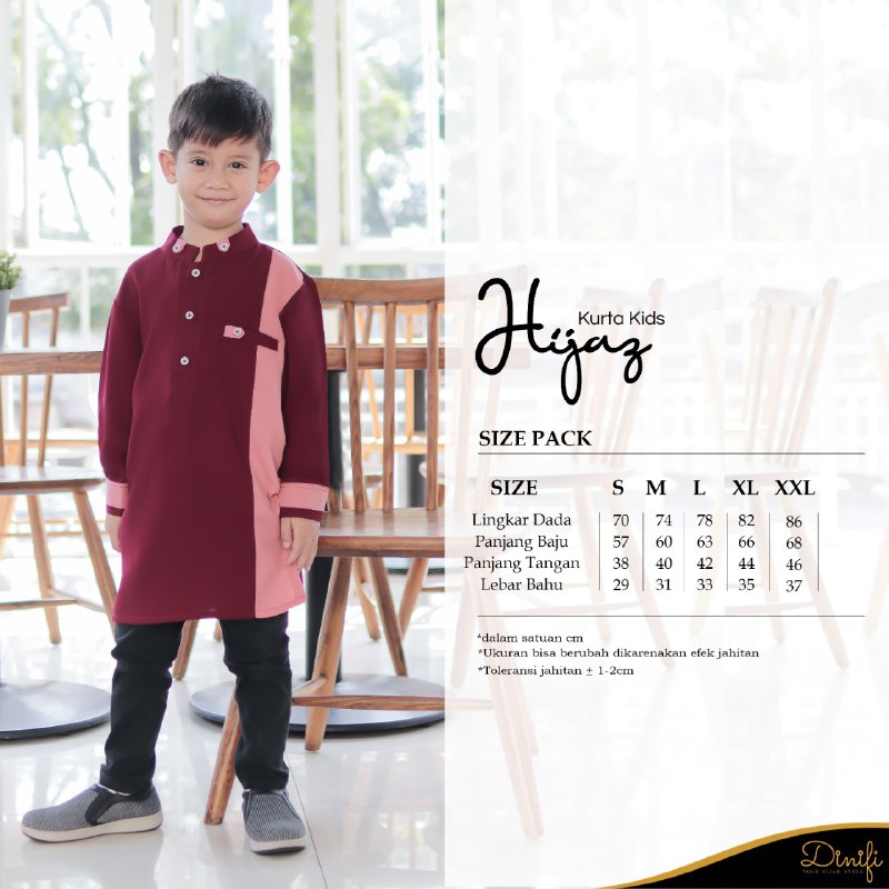 Kurta Hijaz Kids merupakan produk kurta lengan pendek yang diproduksi Dinifi Clothing, dibuat minimalis dengan desain elegan dan trendy yang akan membuat penampilan menjadi stylish.