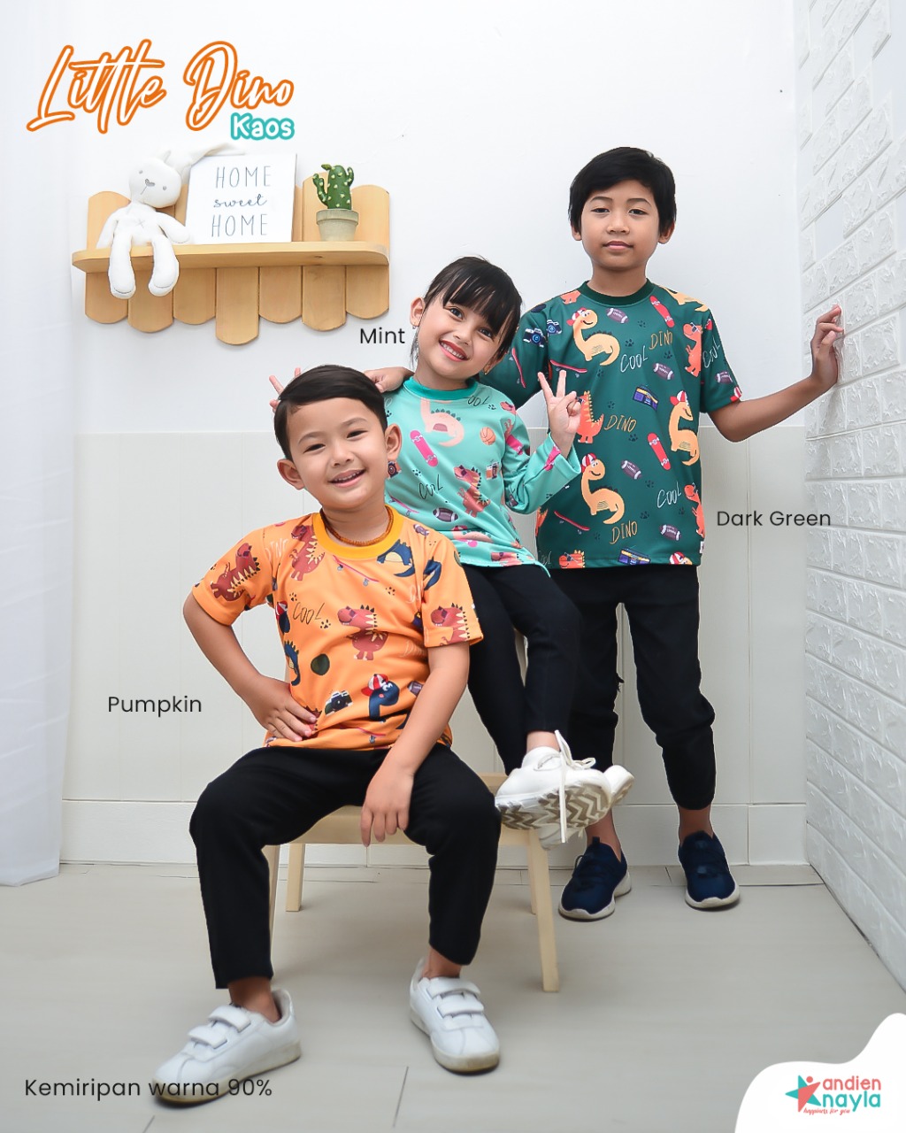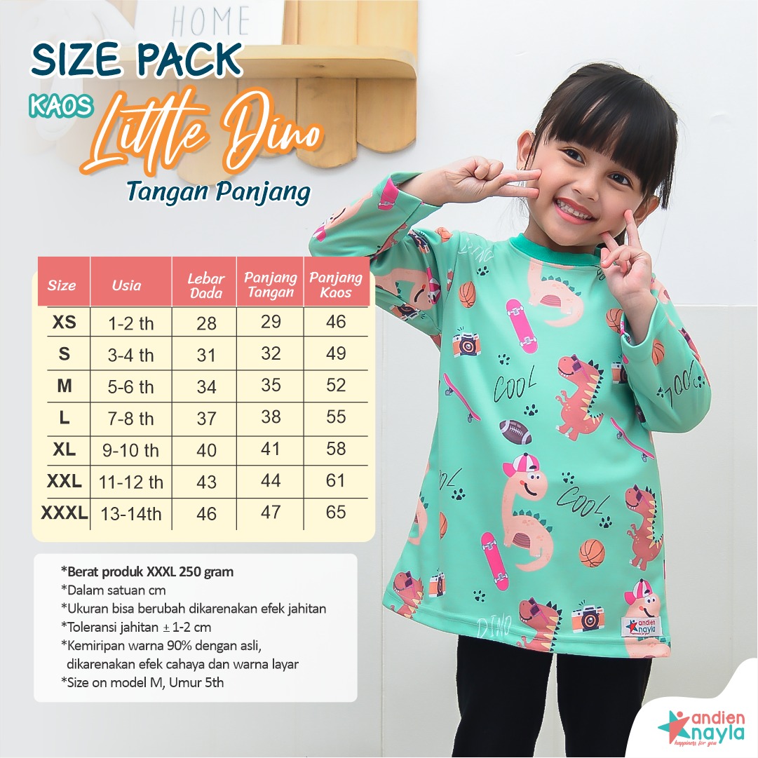 Kaos Little Dino Panjang hadir dalam 3 warna: