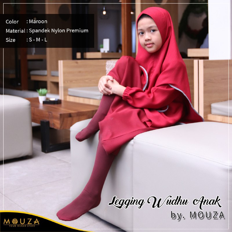 - Pertama kalinya Mouza mengeluarkan produk legging wudhu untuk anak. Legging ini recommended banget untuk sikecil yang aktif dan sering bepergian keluar rumah serta memudahkan untuk menutup aurat hingga ujung kaki dan tidak perlu repot buka pasang kaos kaki lagi.
