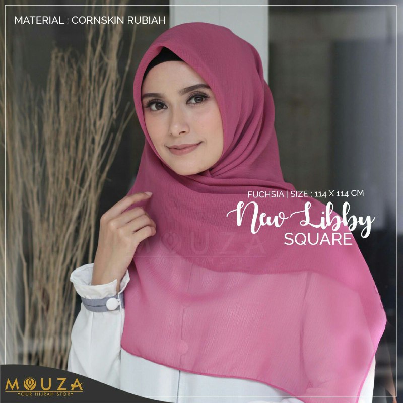 > New Libby Square adalah kerudung segi empat yang berbahan Cornskin Rubiah.