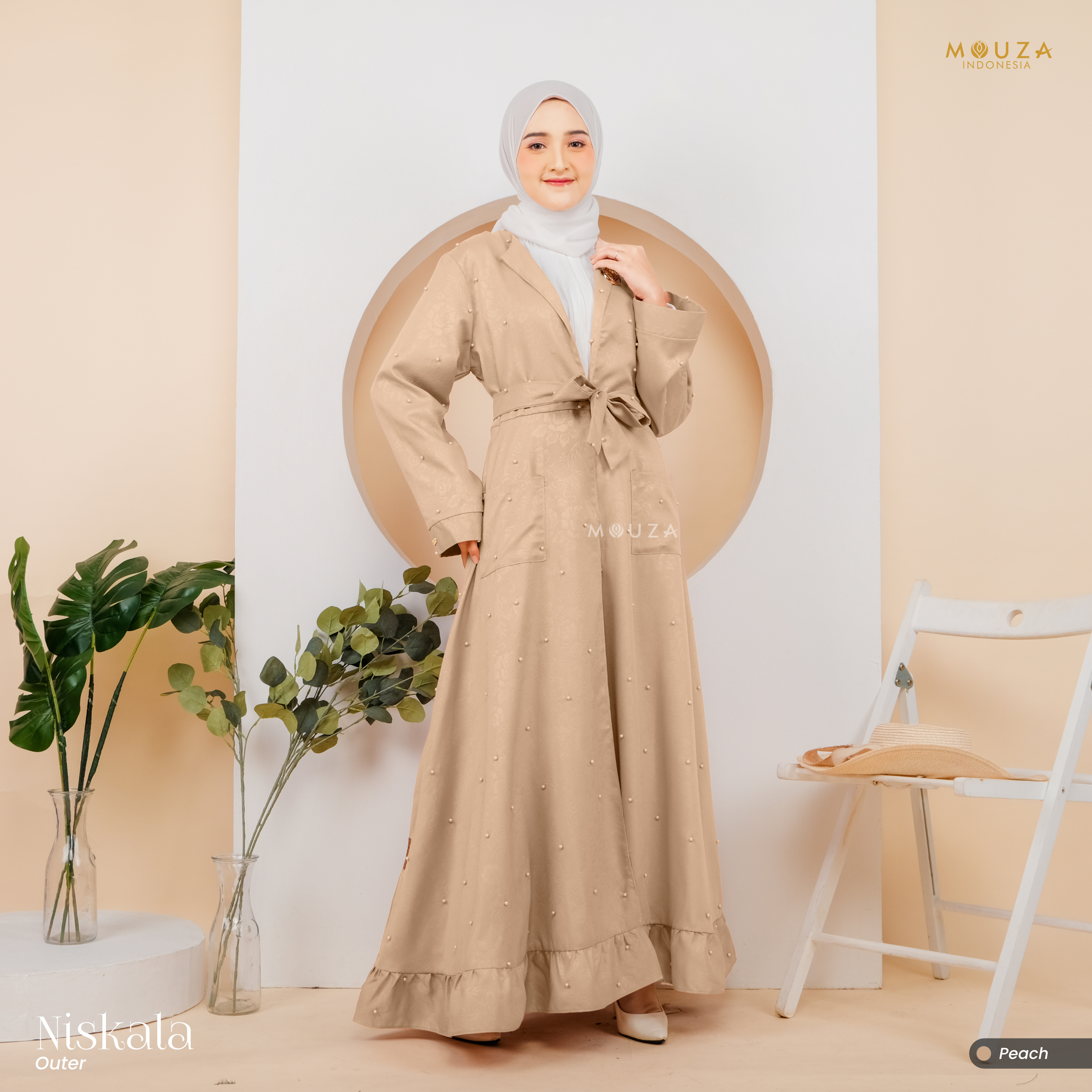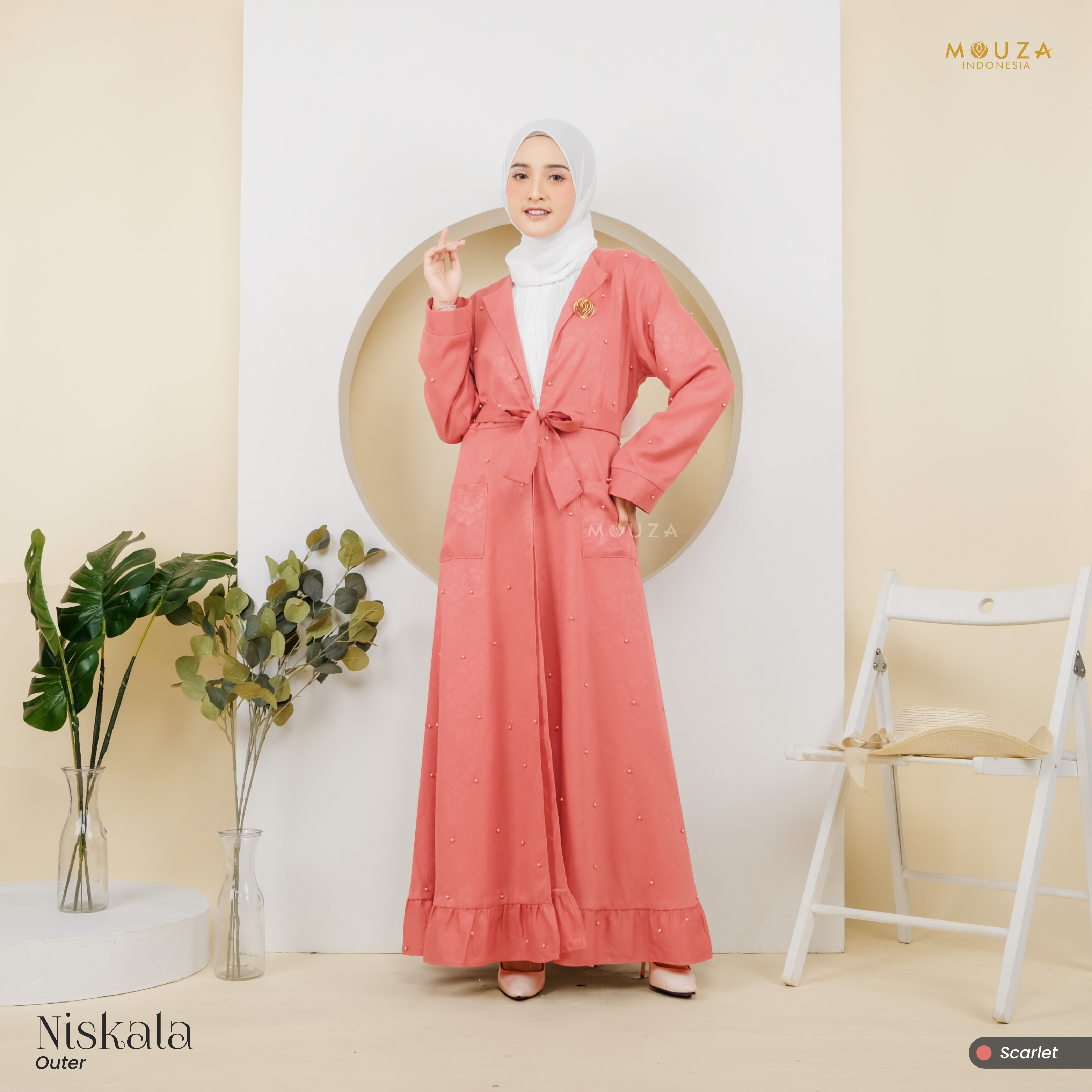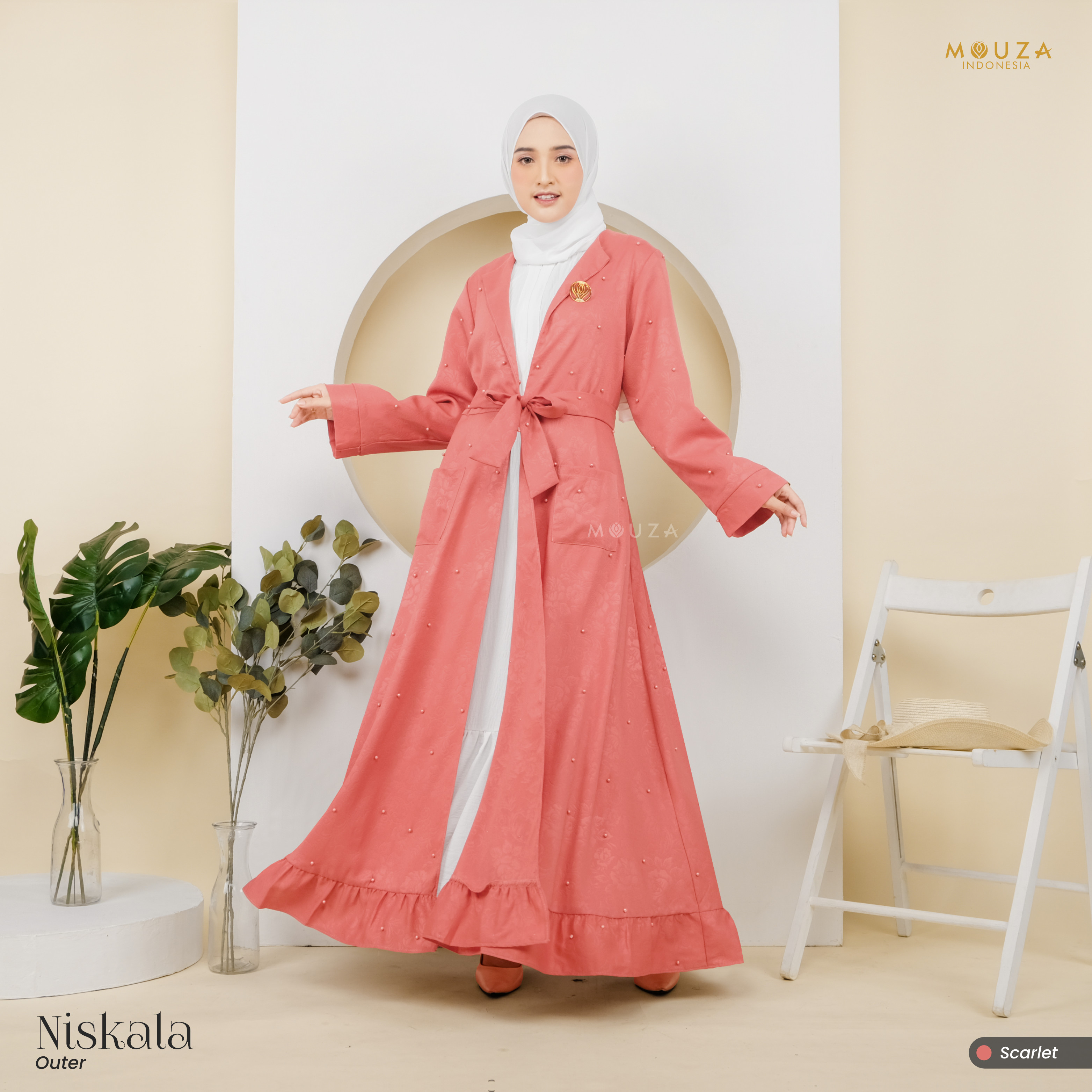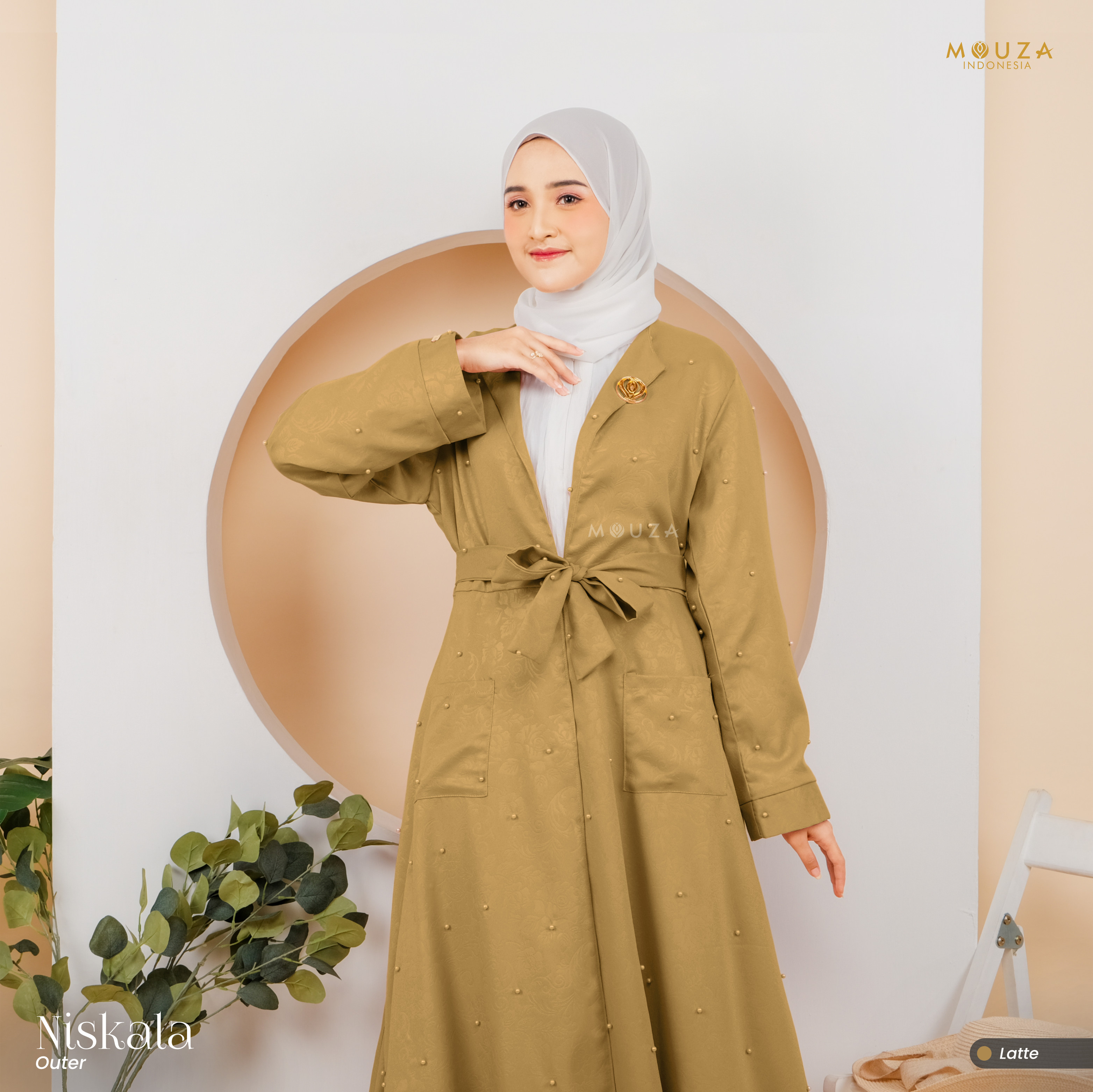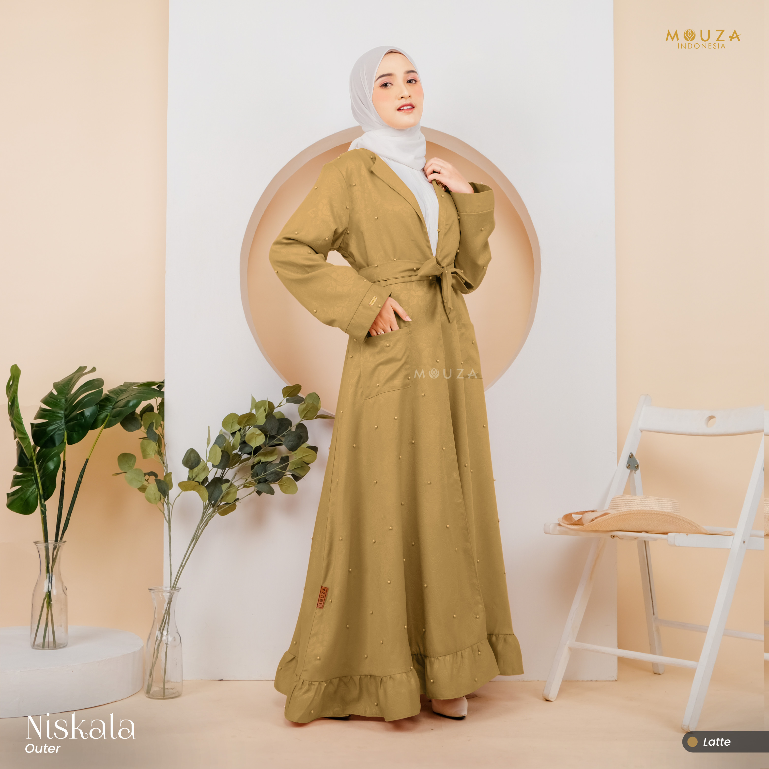 ? Menggunakan material Mosecrepe Embos Mutiara dengan karakteristik bahan yang lentur, nyaman, sangat mudah disetrika, mengkilap dan terkesan elegan dengan tambahan variasi mutiara yang dipadukan dengan brukat Vanci Gliter yang membuat outer ini tampak lebih mewah.