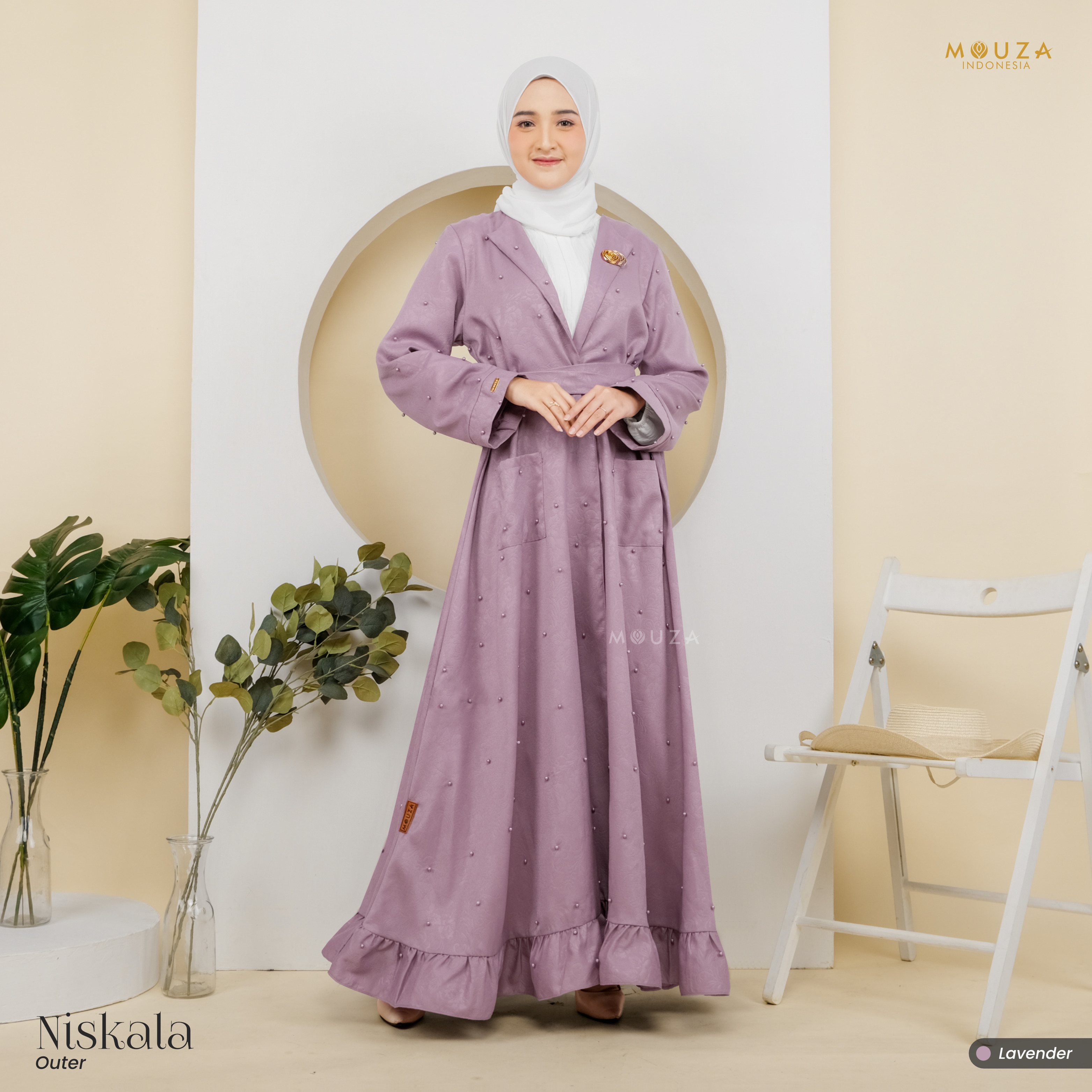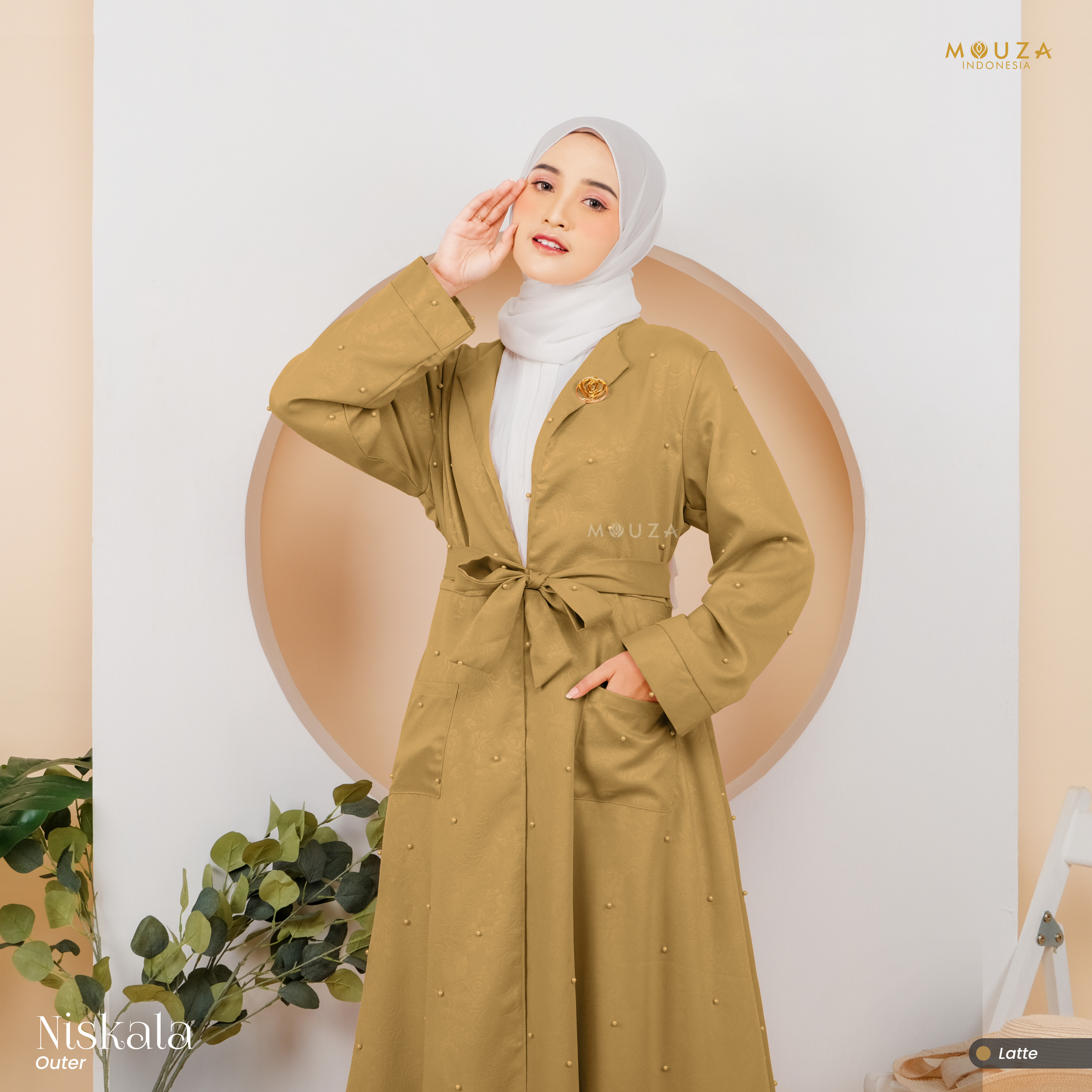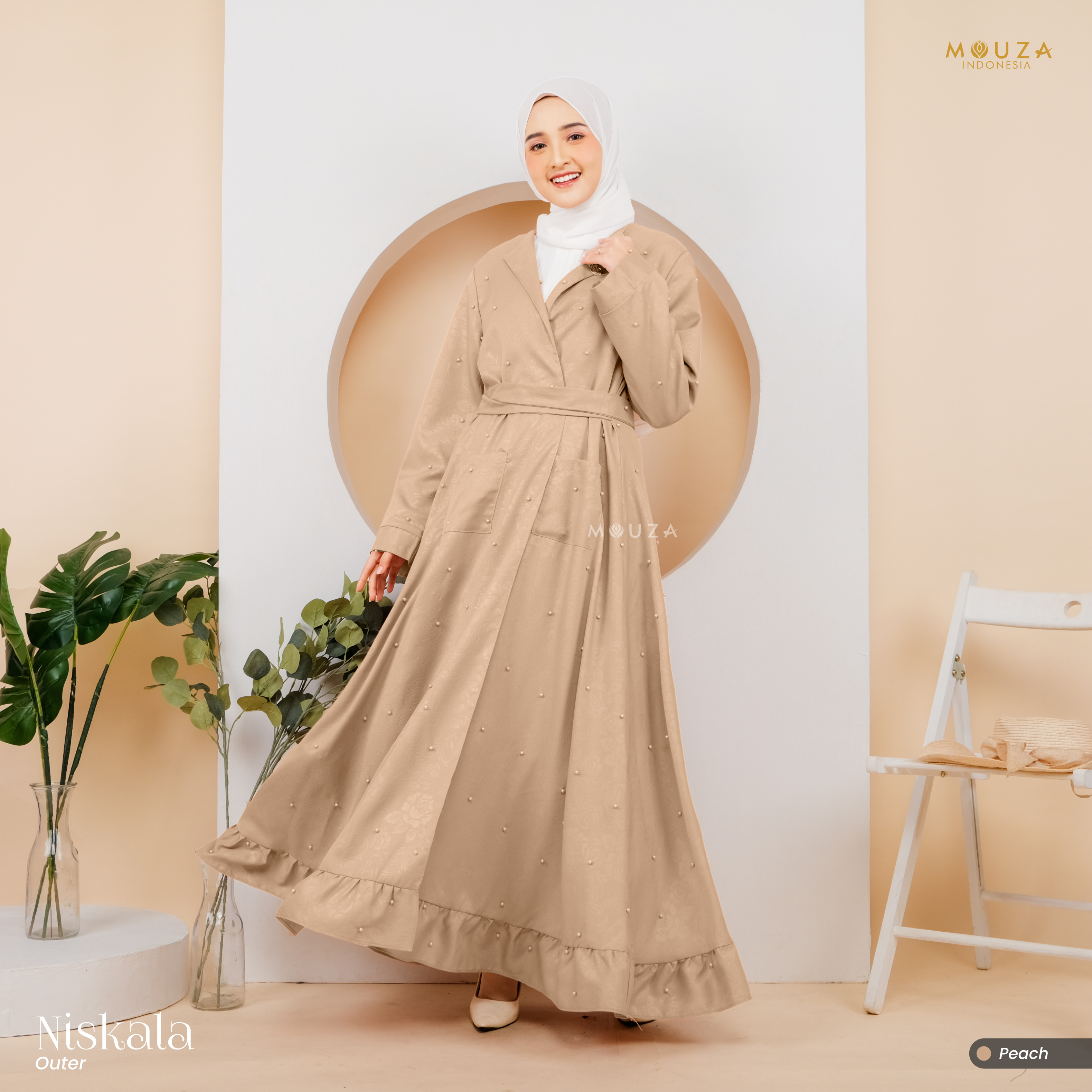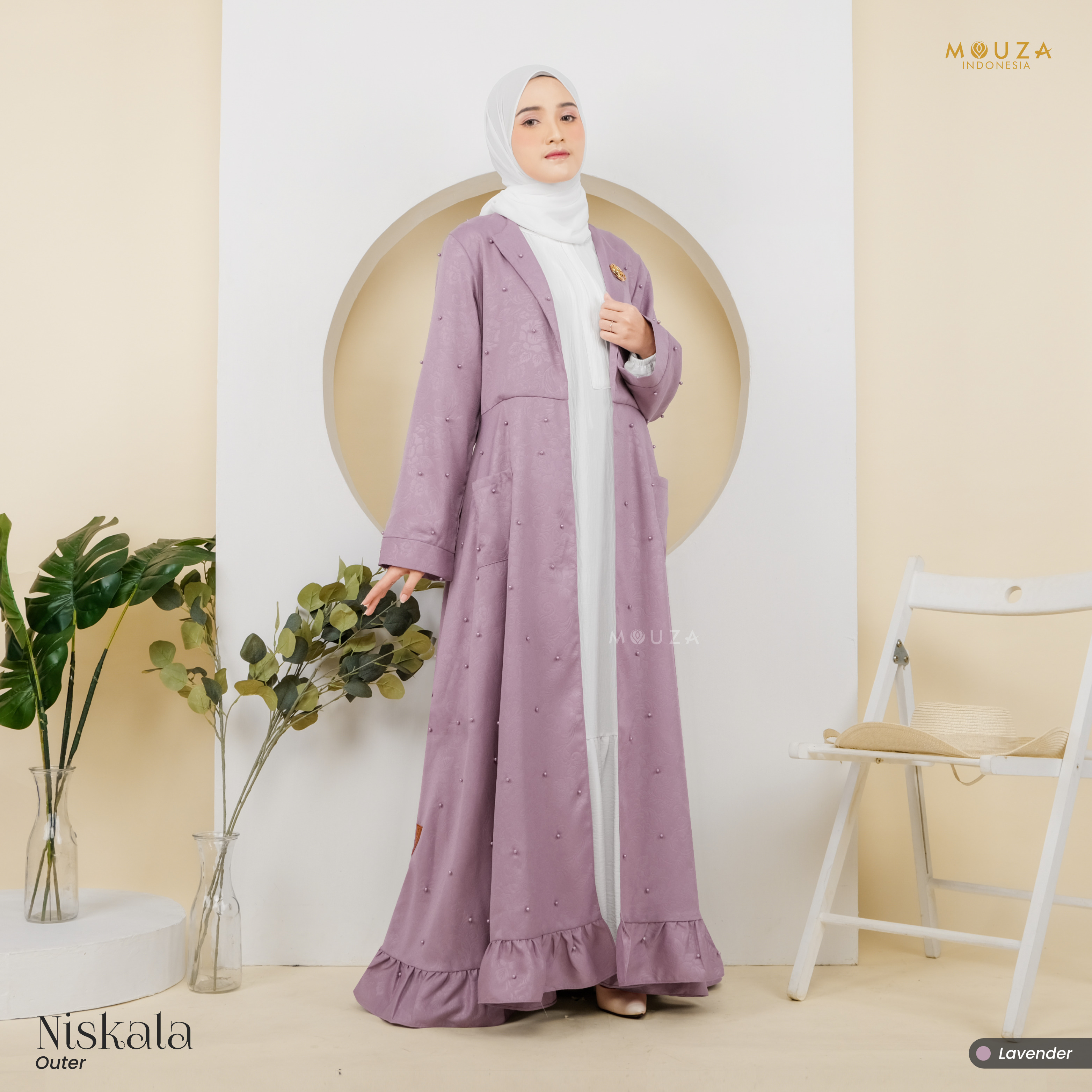 ? Menggunakan material Mosecrepe Embos Mutiara dengan karakteristik bahan yang lentur, nyaman, sangat mudah disetrika, mengkilap dan terkesan elegan dengan tambahan variasi mutiara yang dipadukan dengan brukat Vanci Gliter yang membuat outer ini tampak lebih mewah.