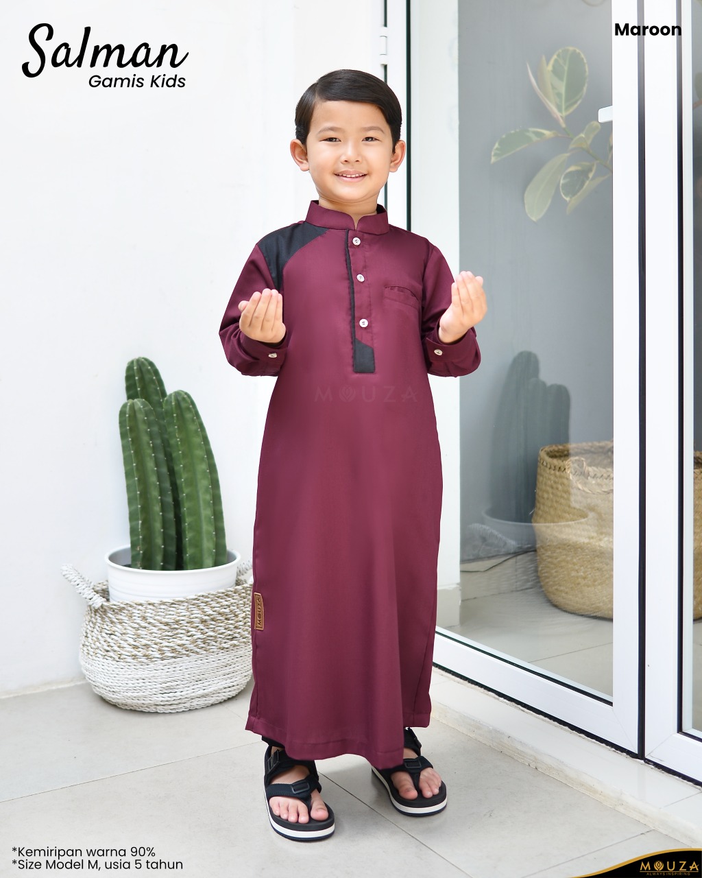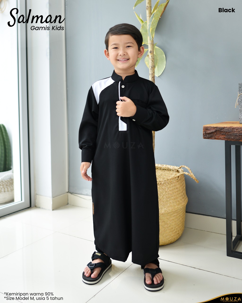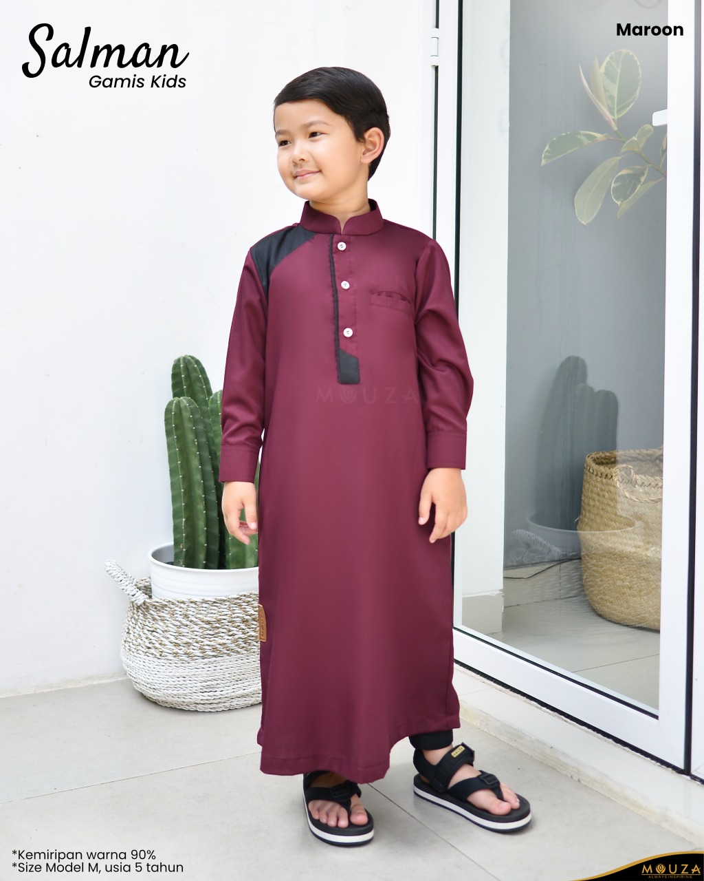 Variasi beda warna di bagian bahu sebelah kanan membuat gamis ini tampak lebih keren.