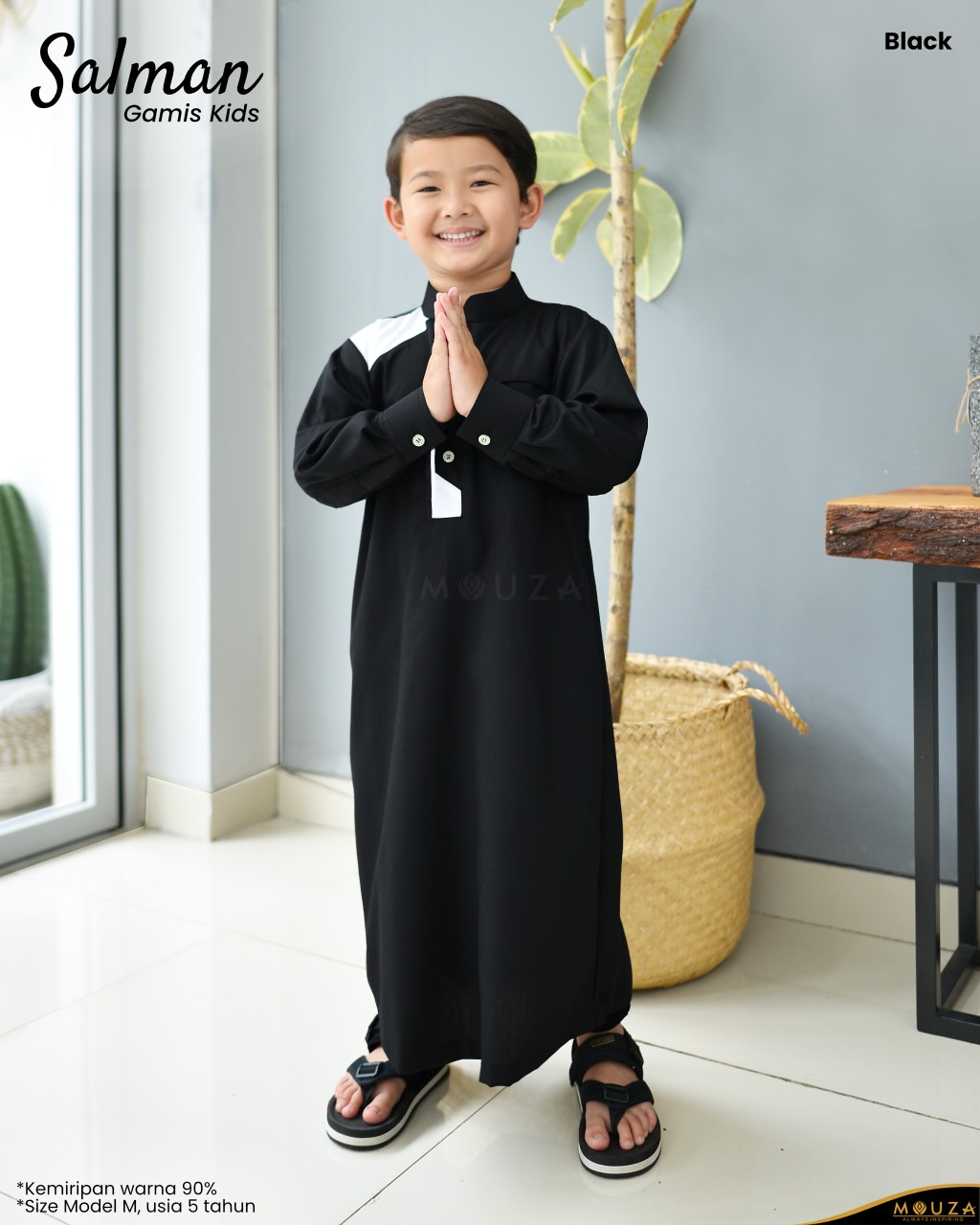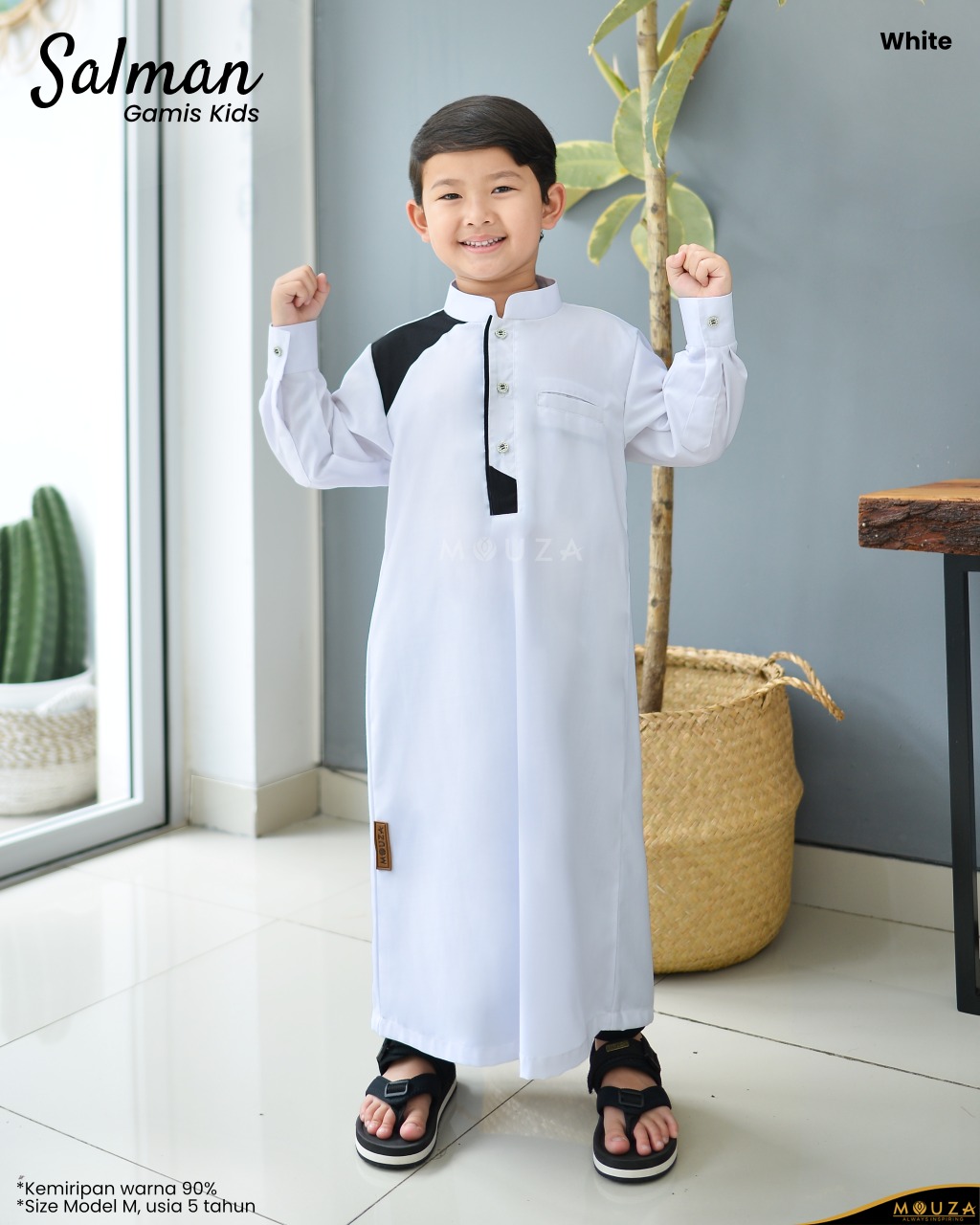 Terdapat kancing dengan variasi list di bagian depan gamis untuk memudahkan pemakaian.