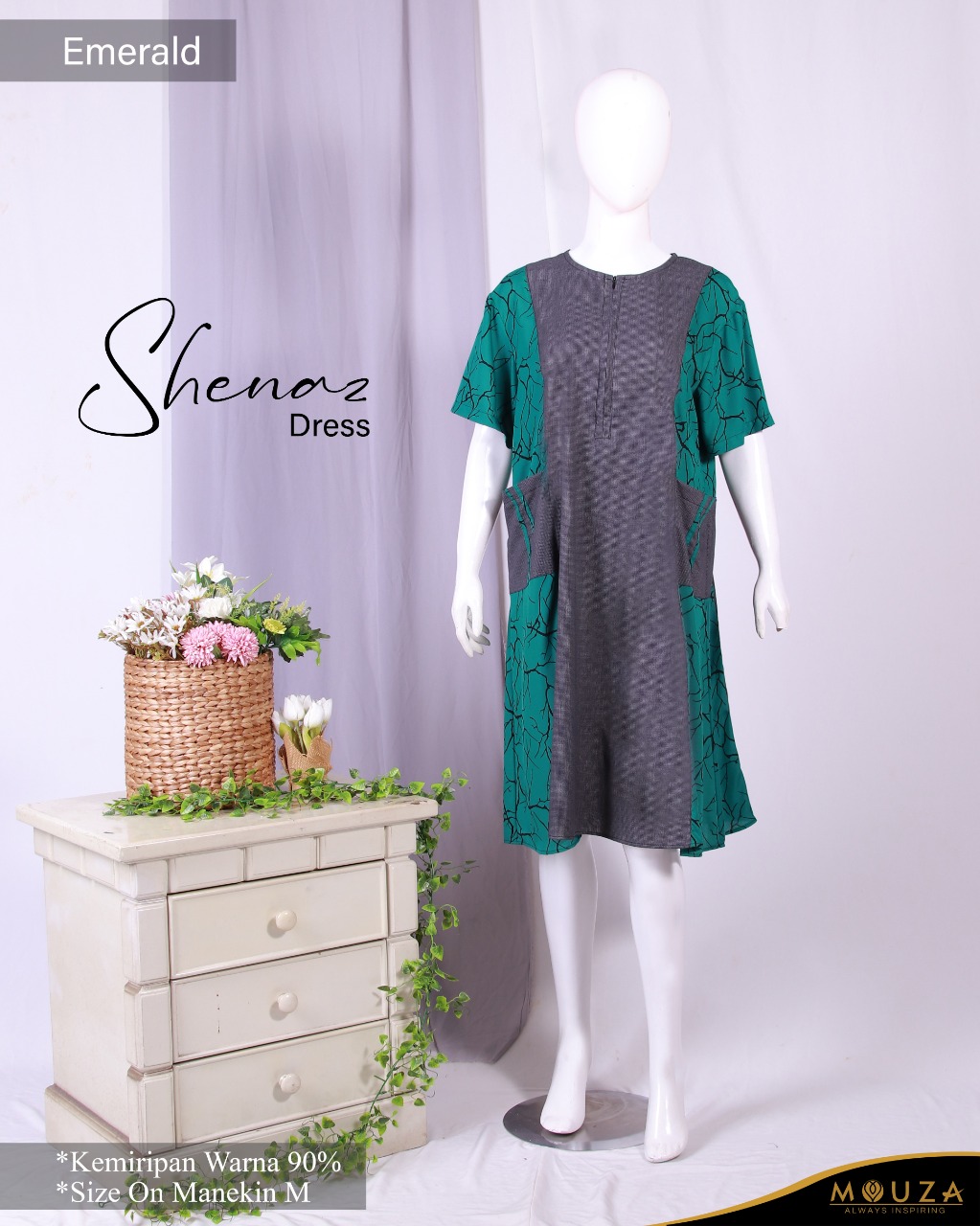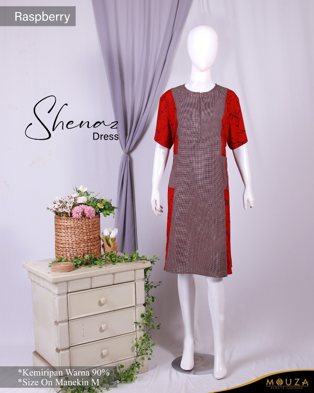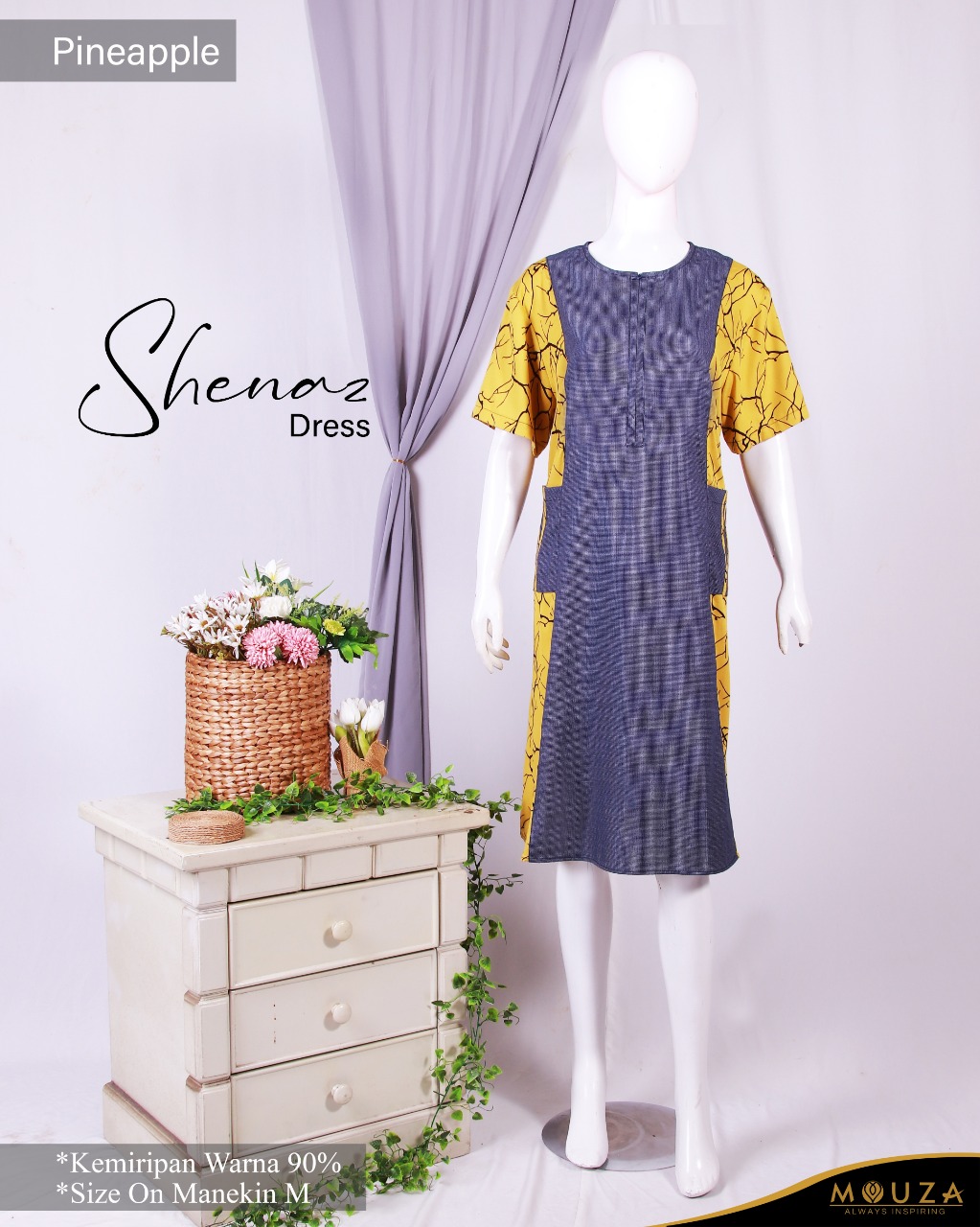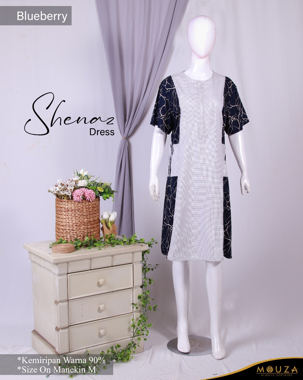 Shenaz dress merupakan dress pendek dari Mouza bermaterial Oxford (grid) dan Rayon (motif root)
