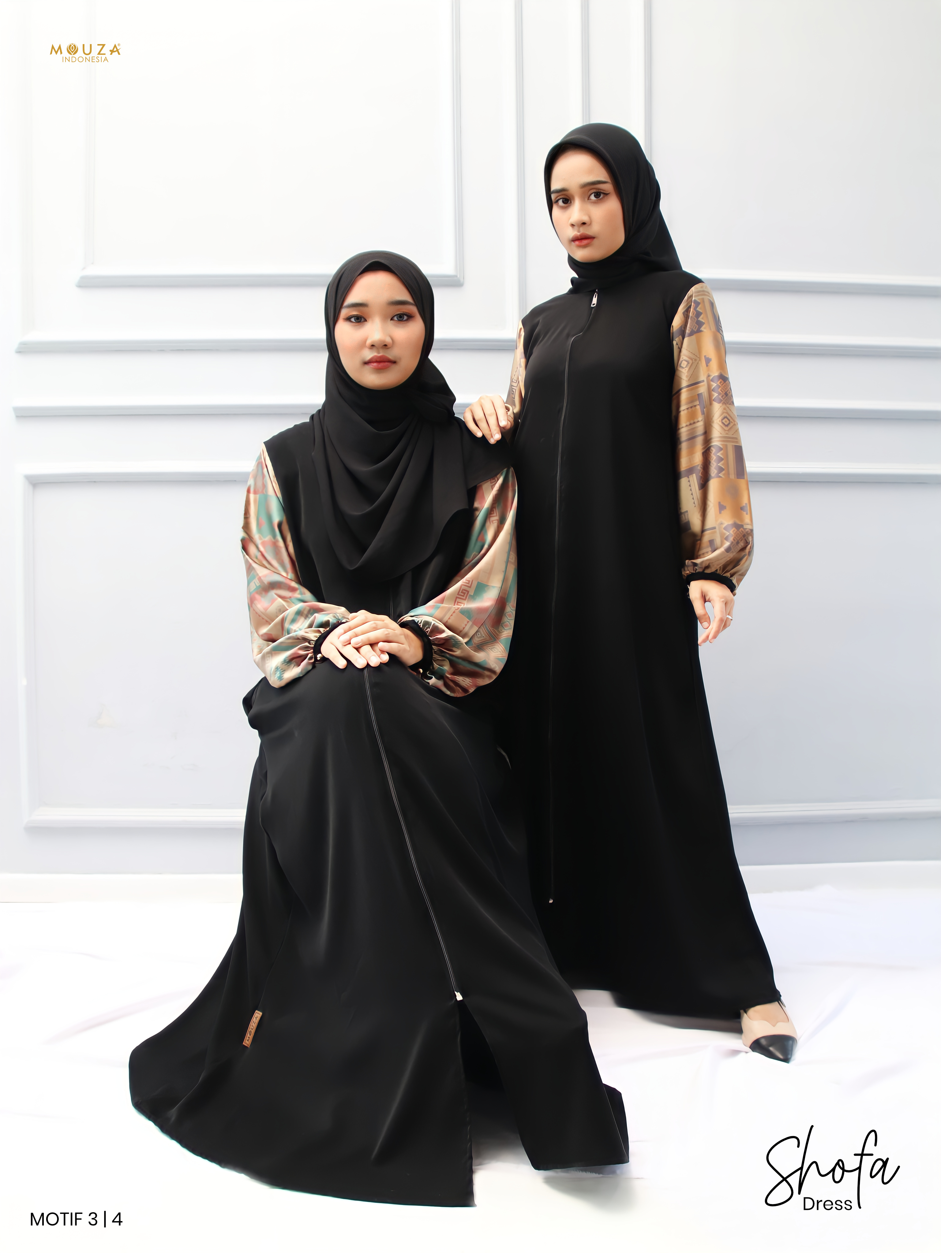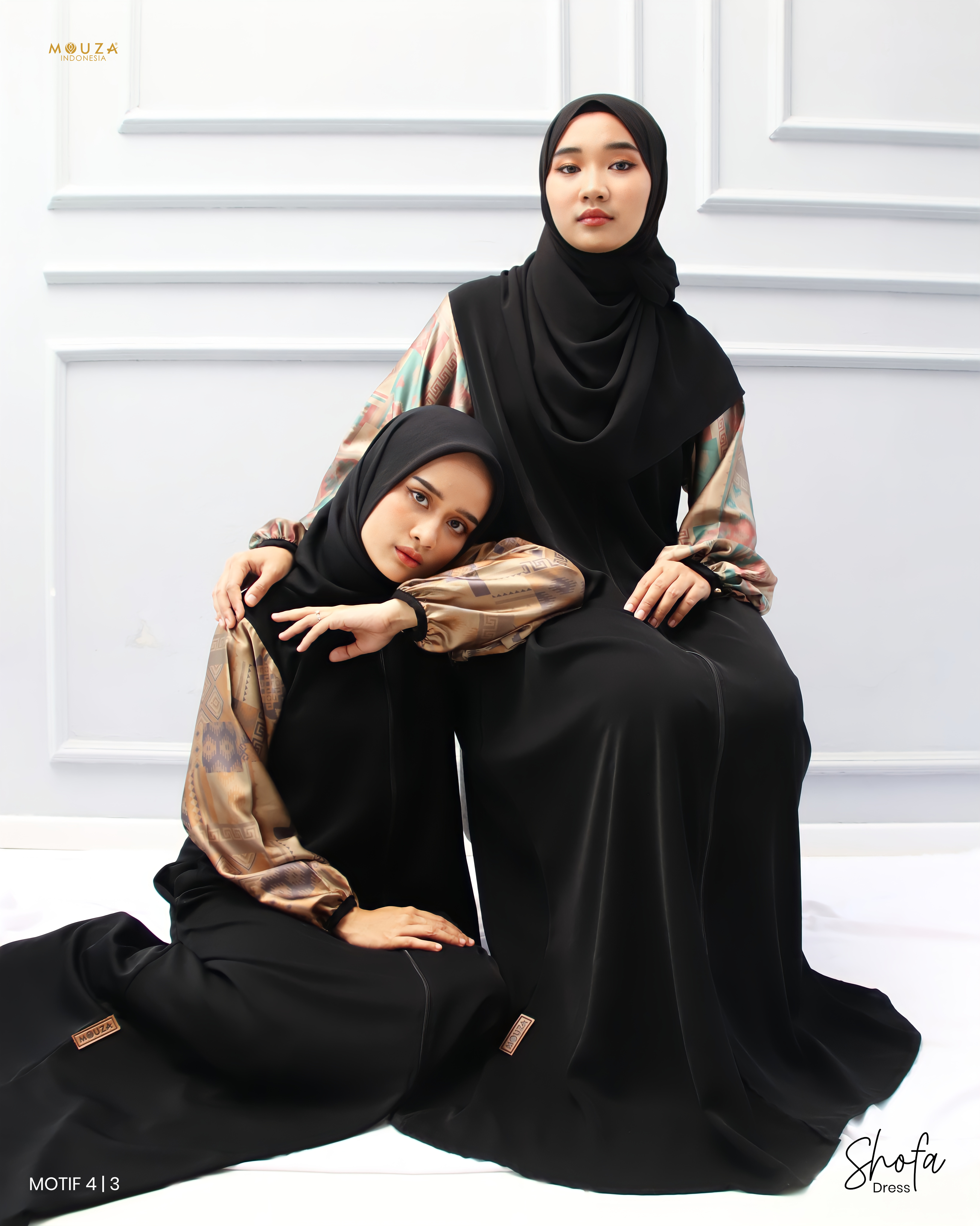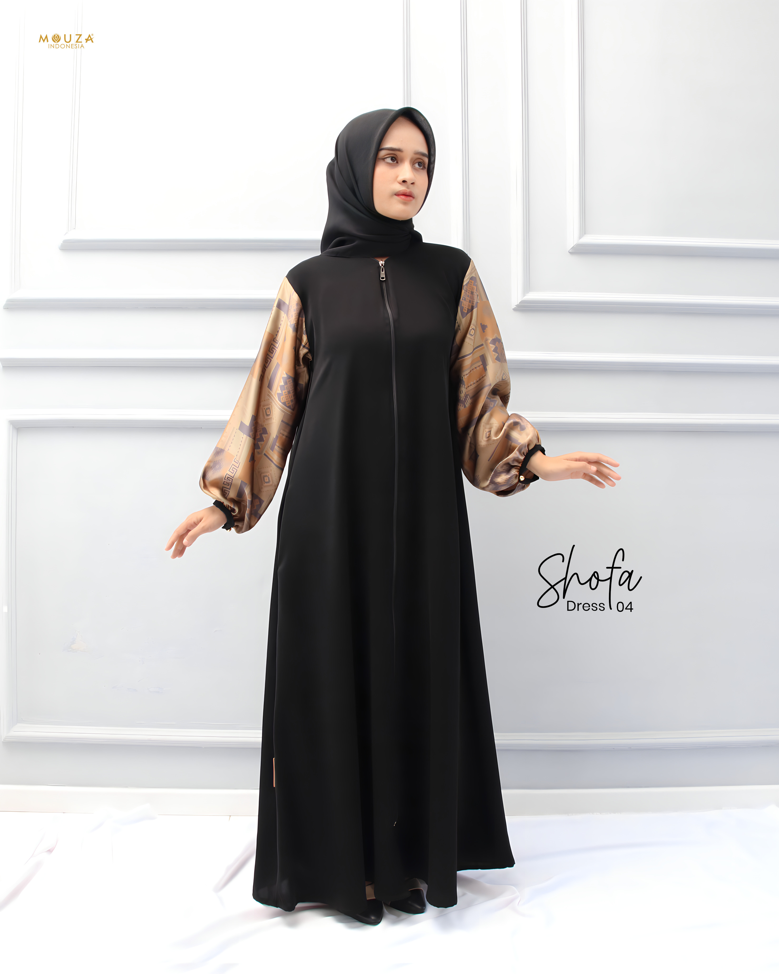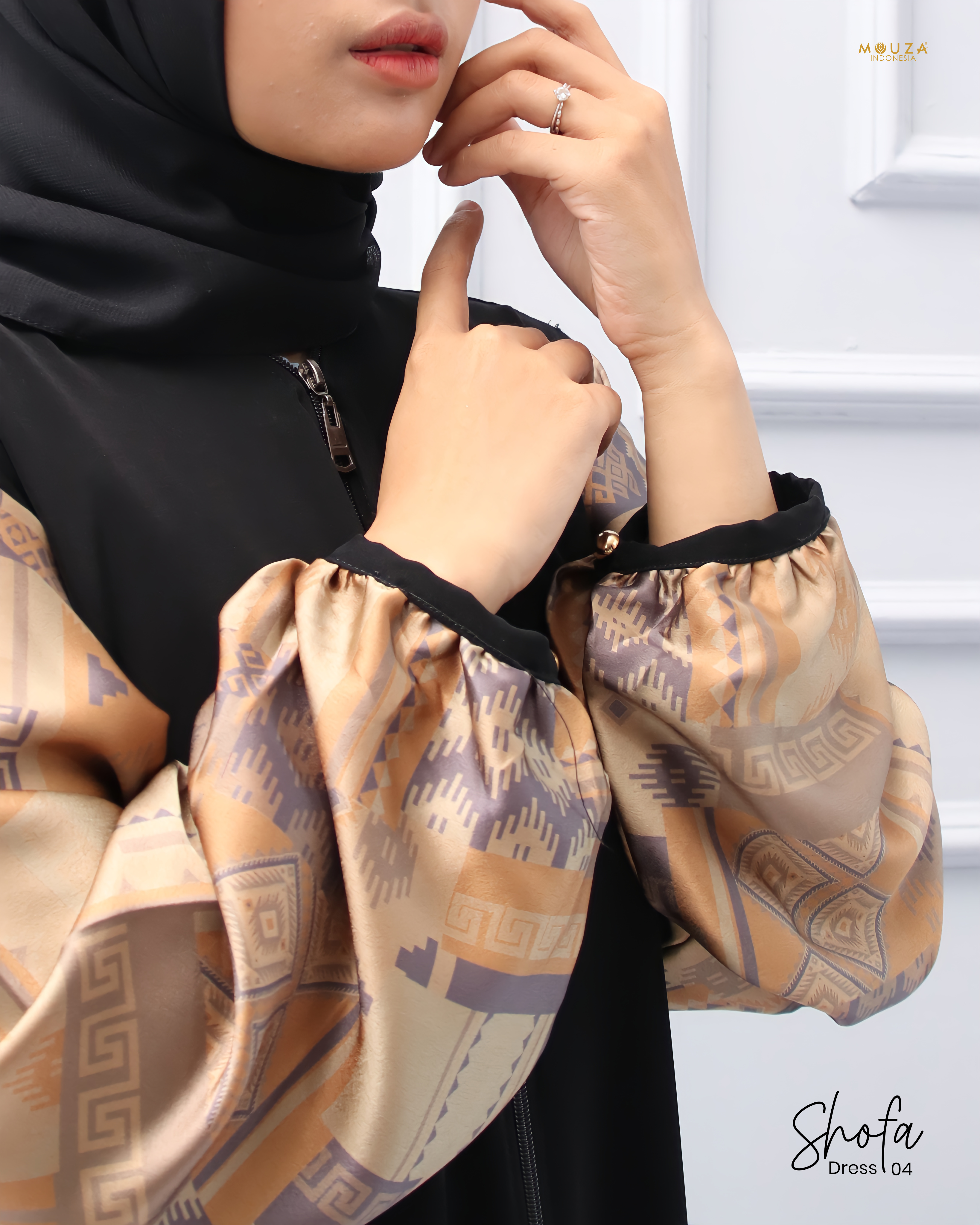 Shofa Dress menggunakan material pokka jetblack dengan karakteristik mempunyai serat yang lembut, adem dan mempunyai warna hitam pekat yang solid.
