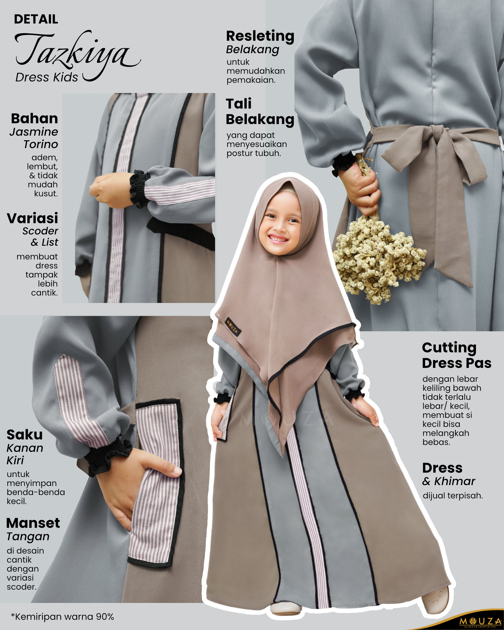 Produk tidak dijual satu set dengan khimar. Dress dan khimar dijual terpisah.