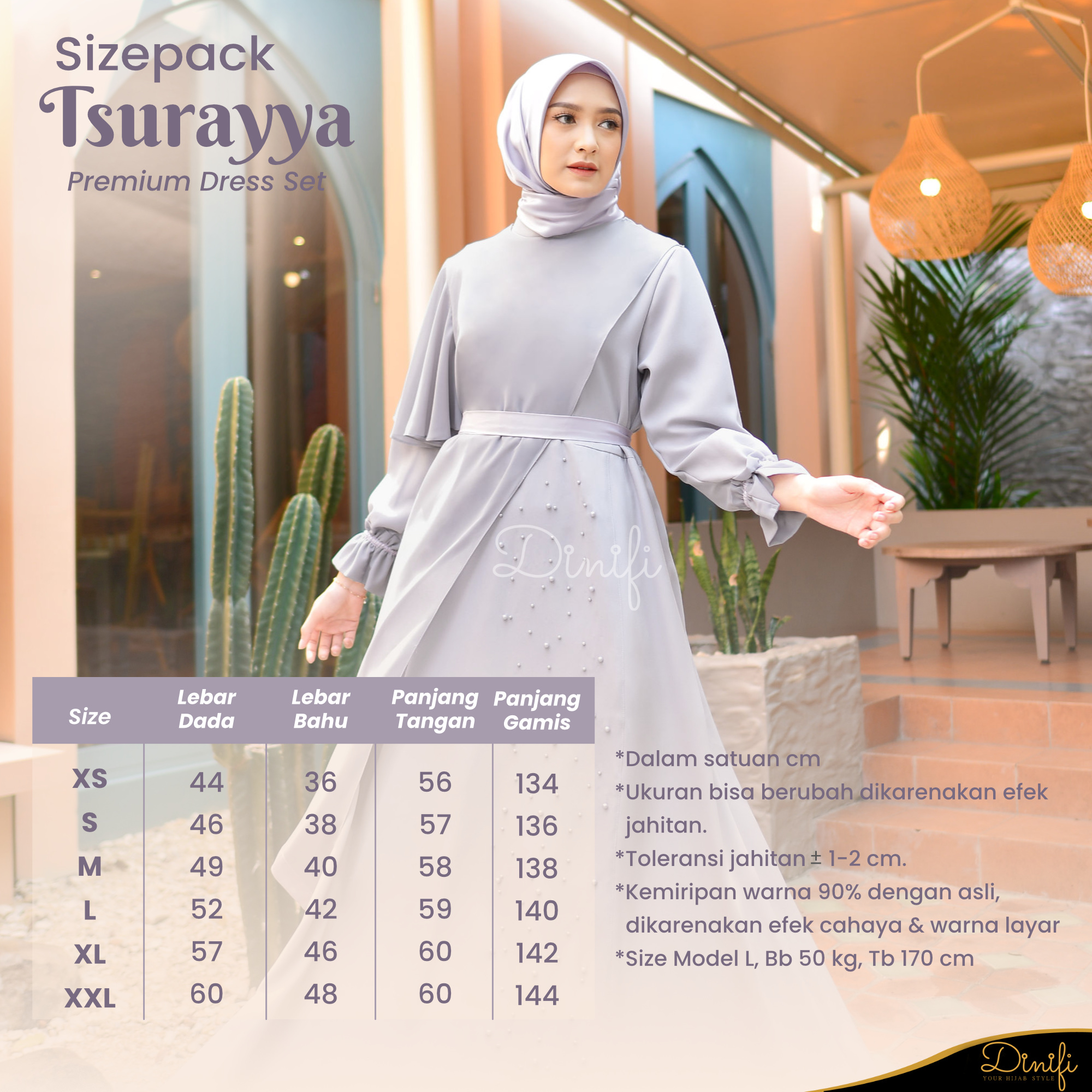 Tsurayya Dress merupakan dress premium dari Dinifi yang di-design spesial dan ekslusif untuk muslimah Indonesia.
